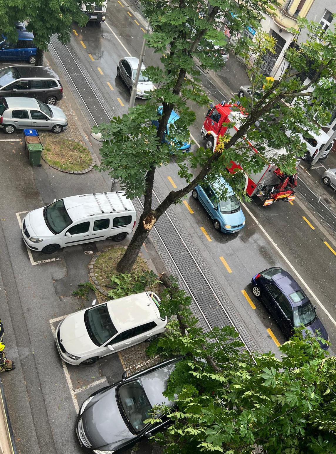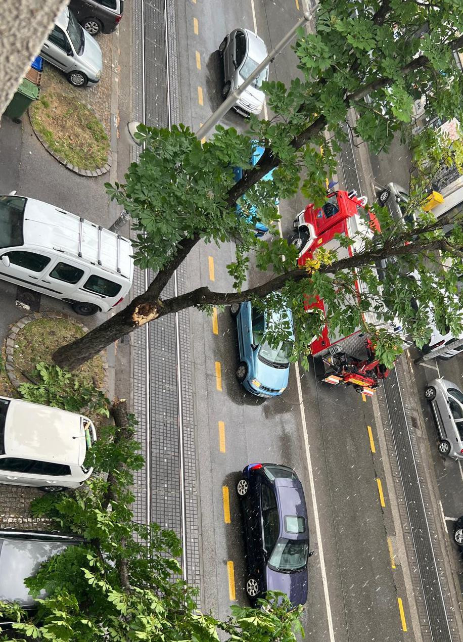 U Maksimirskoj ulici se odlomila velika grana i pala pored tramvajske pruge.