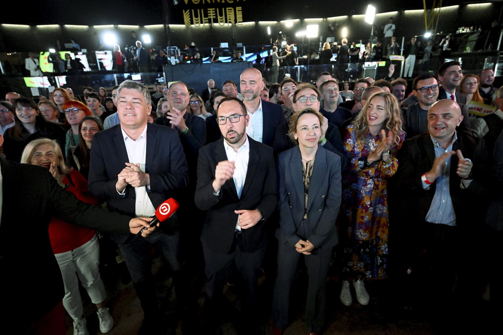 U stožeru Možemo i dalje vlada pozitivna atmosfera, svi su na podiju i plešu. Čeka se govor gradonačelnika Tomislava Tomaševića koji će se u drugom krugu boriti sa Selak Raspudić.