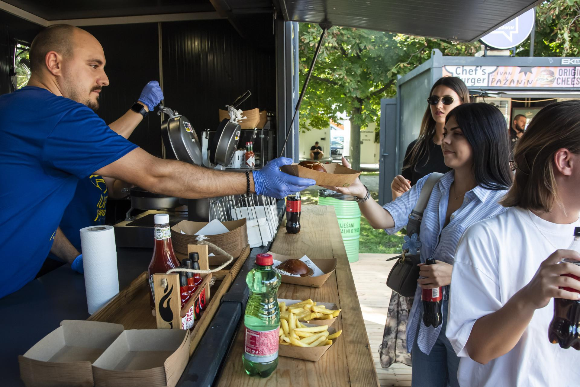 Na desetak kućica posjetitelji mogu isprobati razne vrste burgera, sendviča, šiš ćevapa, krumpirića i deserata. Ponuda je doista raznolika, od klasičnih mesnih do modernih varijanti s neočekivanim kombinacijama okusa, no valja napomenuti kako na ovogodišnjem izdanju festivala nema niti jednog vegetarijanskog ili veganskog burgera. Tako onima koji izbjegavaju meso i proizvode životinjskog podrijetla preostaje uživati samo u krumpirićima ili rebarcima od kukuruza na kućici ekipe iz Noela.