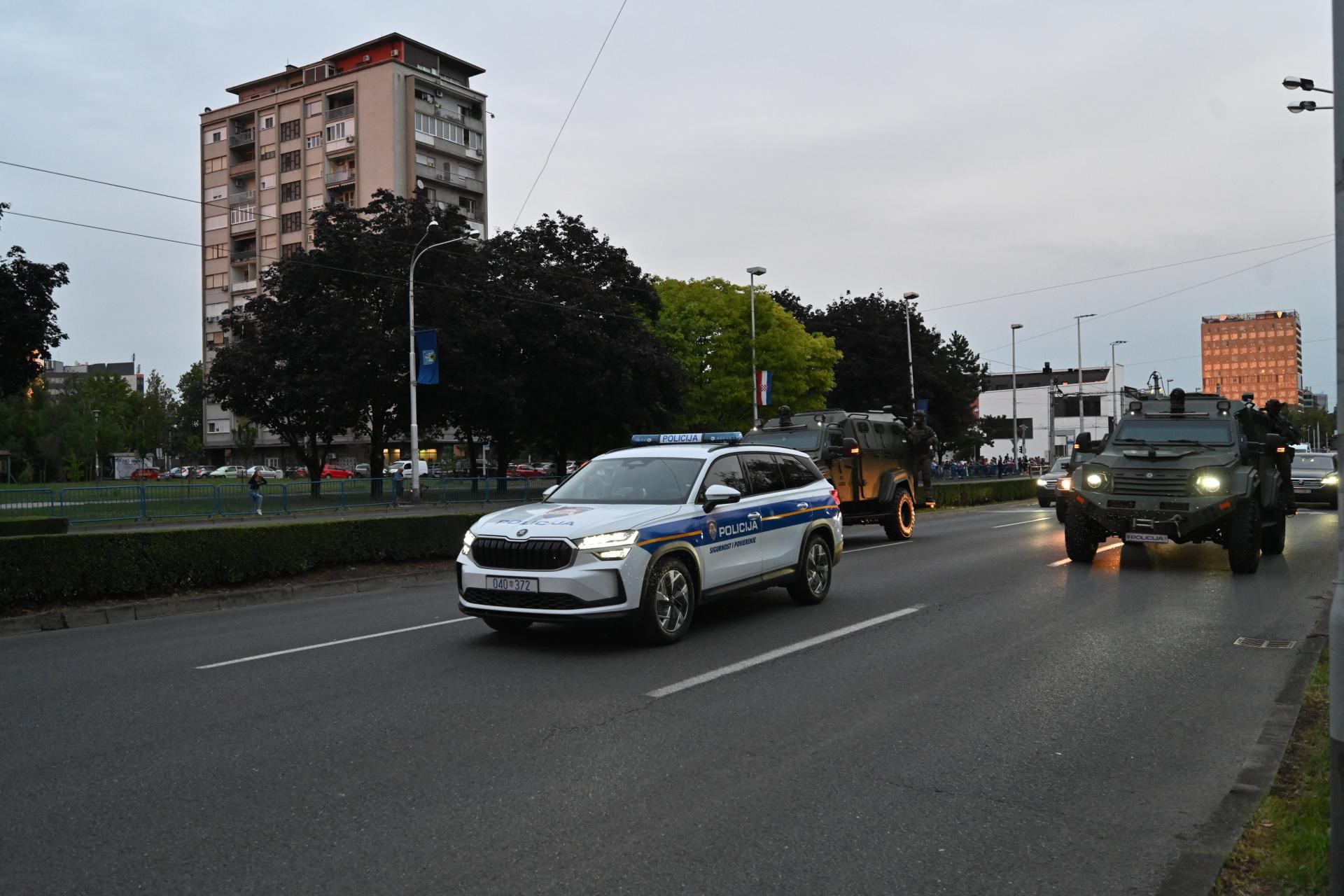 Diljem Vukovarske ulice, na kojoj će se održati glavnina generalne probe svečanog vojnog mimohoda, na svim križanjima raspoređeni su policajci kraj kojih se nalaze metalne i plastične ograde. Policajci čekaju da kucne čas i postave ih na ceste kako bi osigurali miran prolazak hrvatskim vojnicima i vojnim vozilima.
