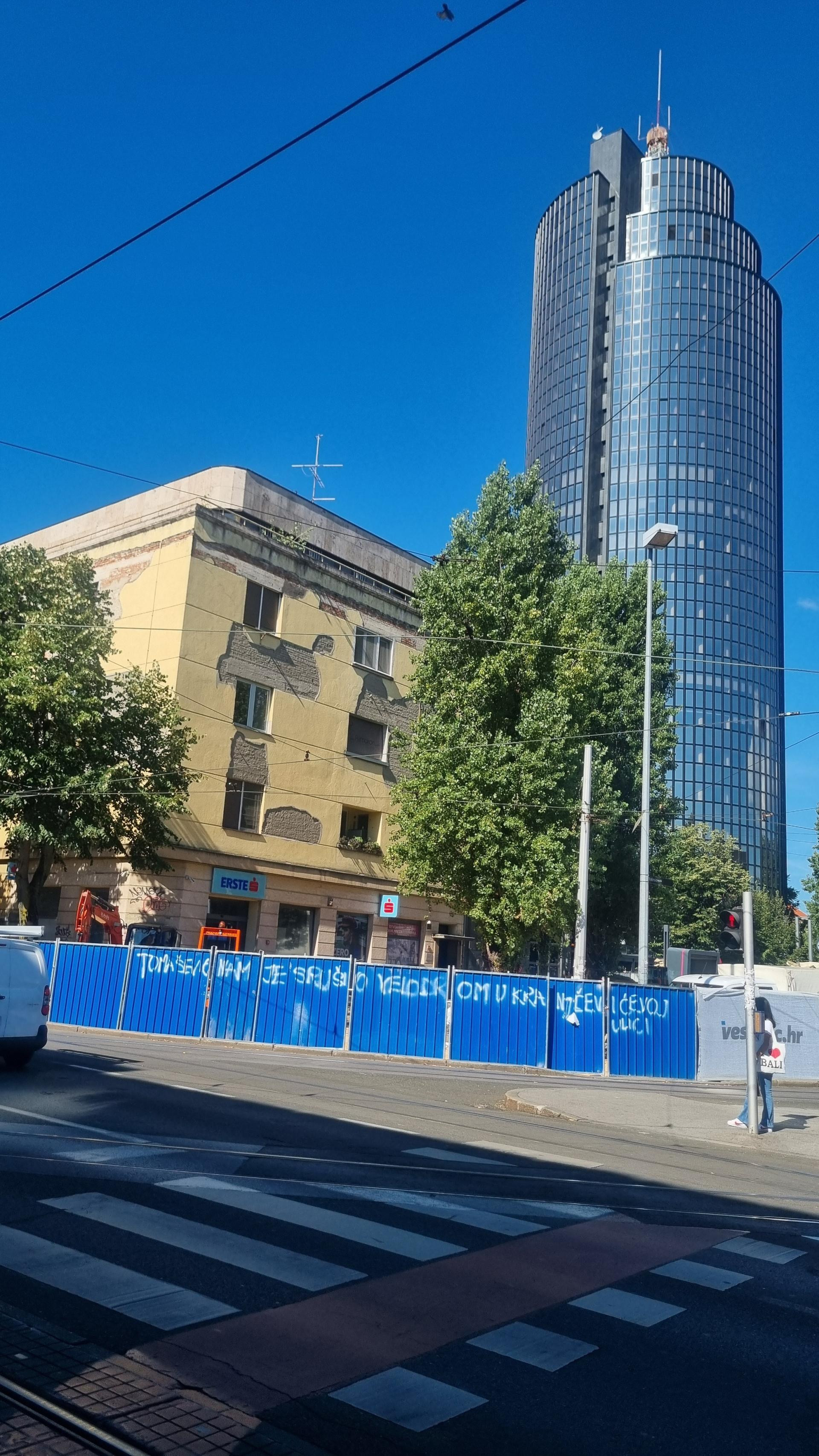Grafit na kojem stoji ‘Tomašević nam je srušio velodrom u Kranjčevićevoj ulici‘ osvanuo je na plavoj ogradi gradilišta na Savskoj cesti kod Cibonine dvorane. Pješački plato kod tornja obnavlja se već nekoliko tjedana, a grafit protiv gradskih vlasti osvanuo je negdje tijekom vikenda.