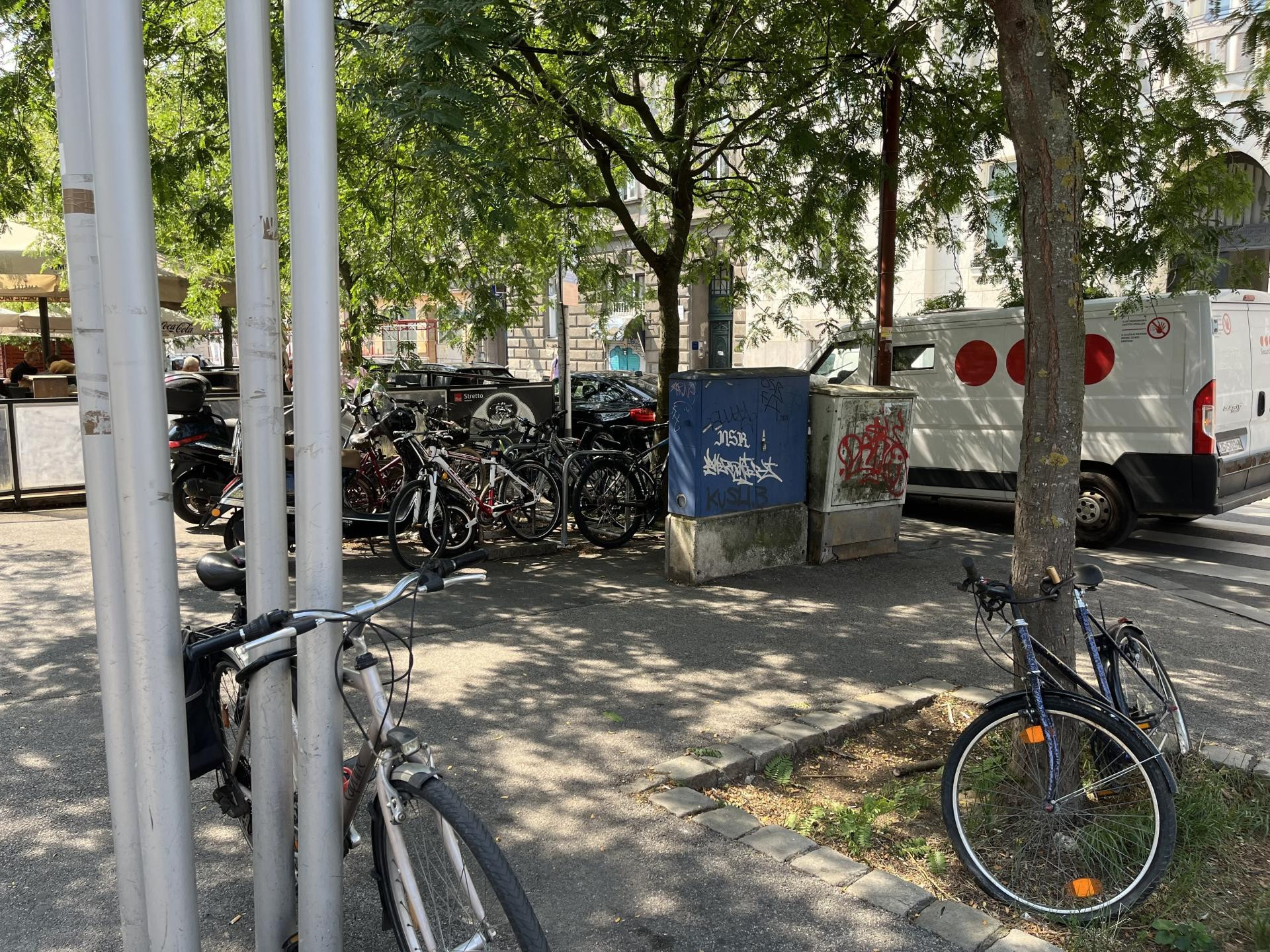I stvarno je neobično da u malom hladu koji čini drvored postoji samo jedna klupa, što je naročito izraženo kada primijetimo da je ljubiteljima Britanca najdraže prijevozno sredstvo - bicikl. Na nekoliko se pozicija nalaze stalci za bicikle, poznati kao ‘‘klamerice‘‘, koji su prepuni. Zato je logično pomisliti da bi se neki od biciklista htjeli odmoriti na trgu, a da svaki put ne moraju sjedati na terase kafića na kojima, da bi sjedili, moraju naručiti piće.