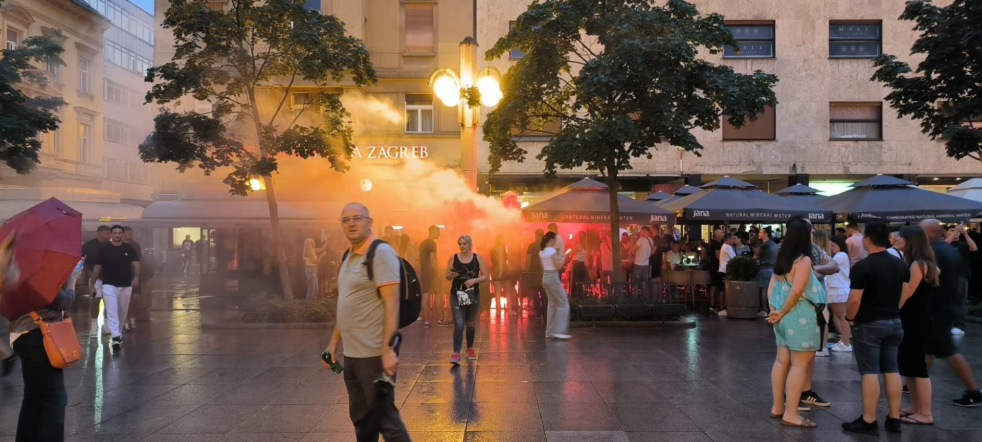 Na Cvjetnom trgu se pale baklje, a iz kafića svira glasna muzika. Pogledajte snimku i fotografije: