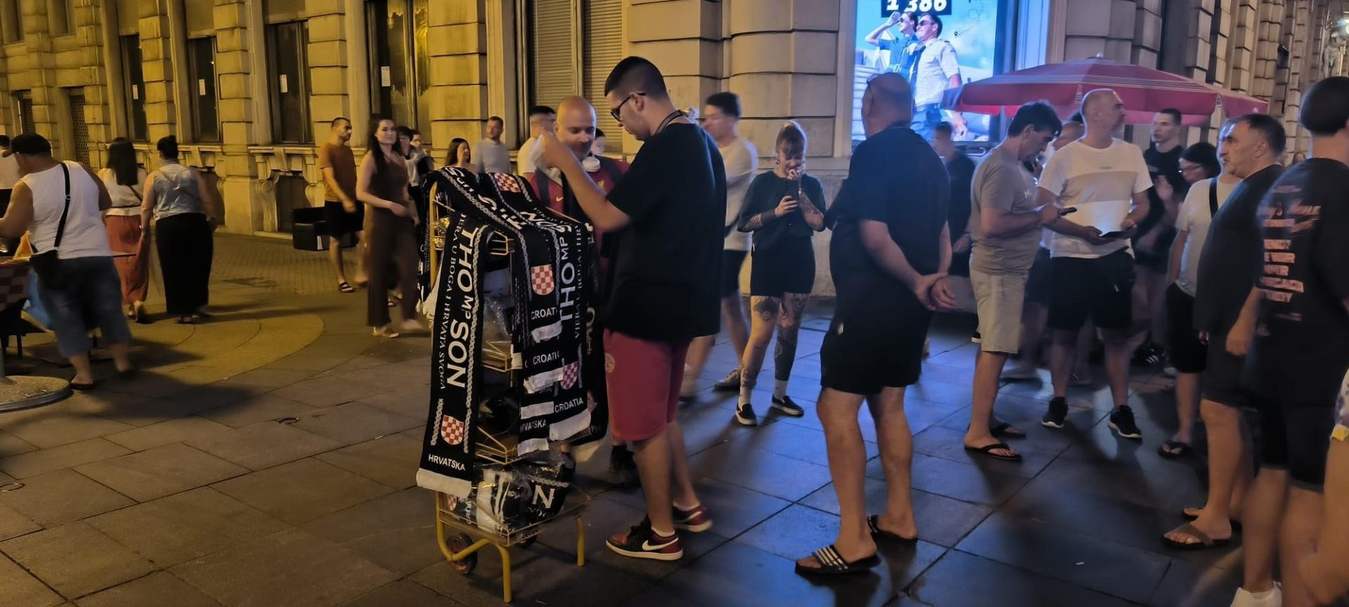 U centru Zagreba se prodaju brojni suveniri uoči Thompsonovog koncerta. Tako, primjerice, jedan prigodni šal možete kupiti za 20 eura.