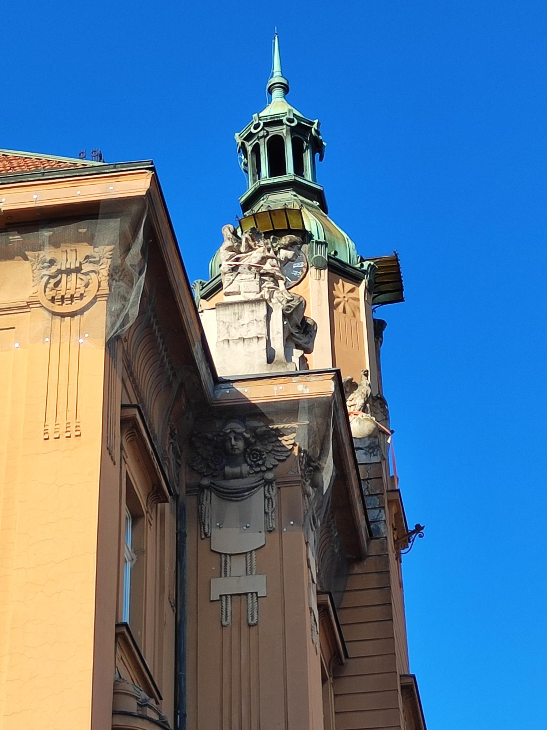 Zgrada je to koju je izgradio arhitektonski biro Hönigsberg i Deutsch prema projektu Vjekoslava Bastla. Tornjić na glavnom pročelju po kojemu se ističe, kao i kamena plastika s krova od potresa su učvršćeni gurtnama. Vlasništvo zgrade podijeljeno je između Republike Hrvatske i privatnih osoba.