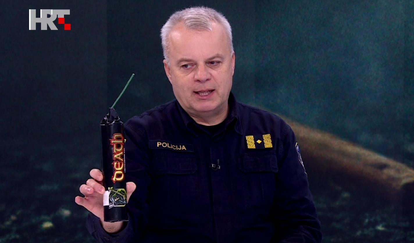 Vukoja je u studio donio nekoliko primjeraka petardi, od malih zelenih pa do velikih, uključujući jednu s natpisom "Death" (smrt), kakve su čak ove godine počeli pronalaziti kod maloljetnika na terenu.