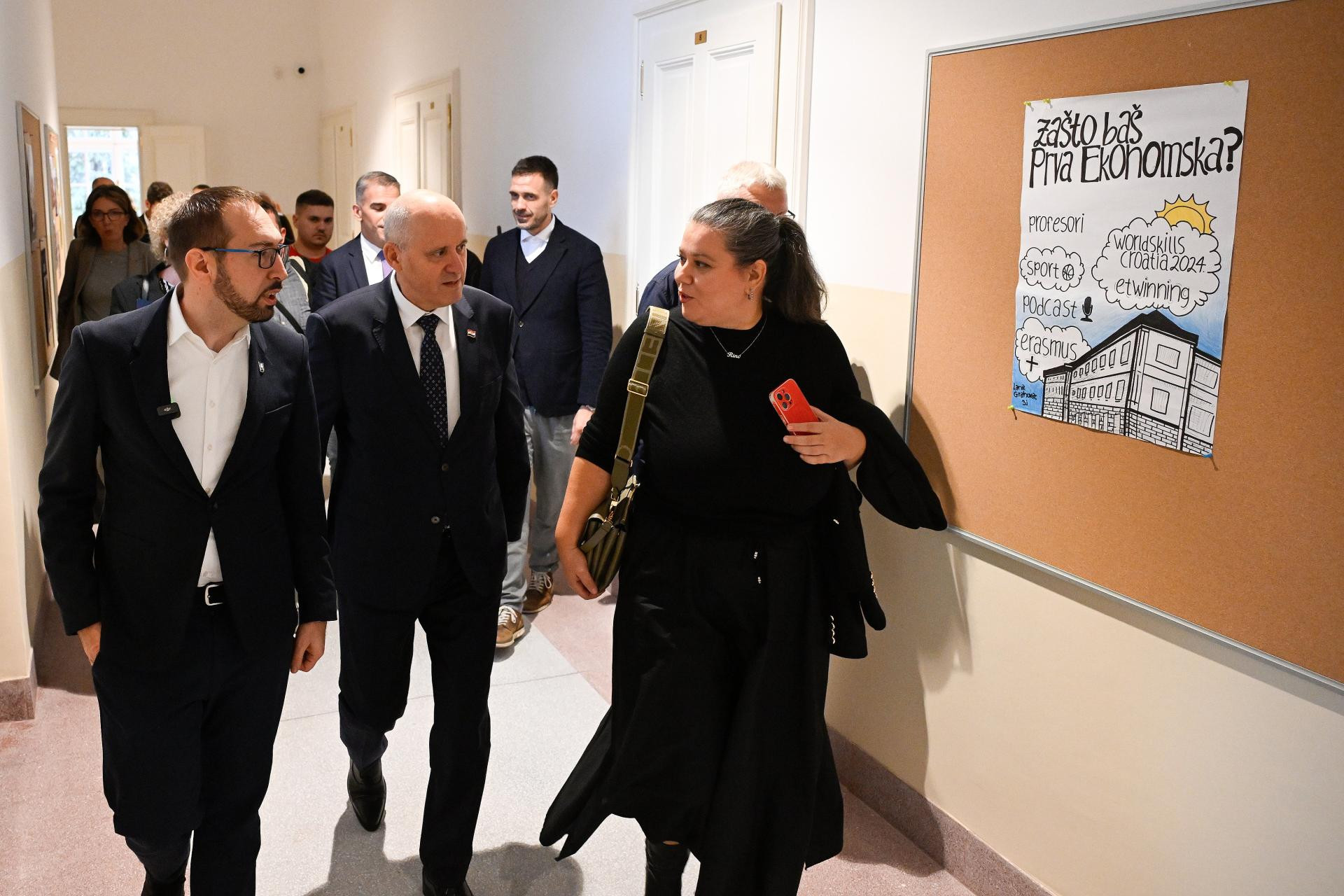 Gradonačelnik Tomislav Tomašević, zamjenik gradonačelnika Luka Korlaet i ministar prostornog uređenja, graditeljstva i državne imovine Branko Bačić obišli su jučer obnovljenu zgradu l. ekonomske škole u Zagrebu. Gotovo 1000 učenika ove škole opet su u učionicama u Medulićevoj ulici, nakon što je zgrada teško oštećena u potresu 2020. godine.