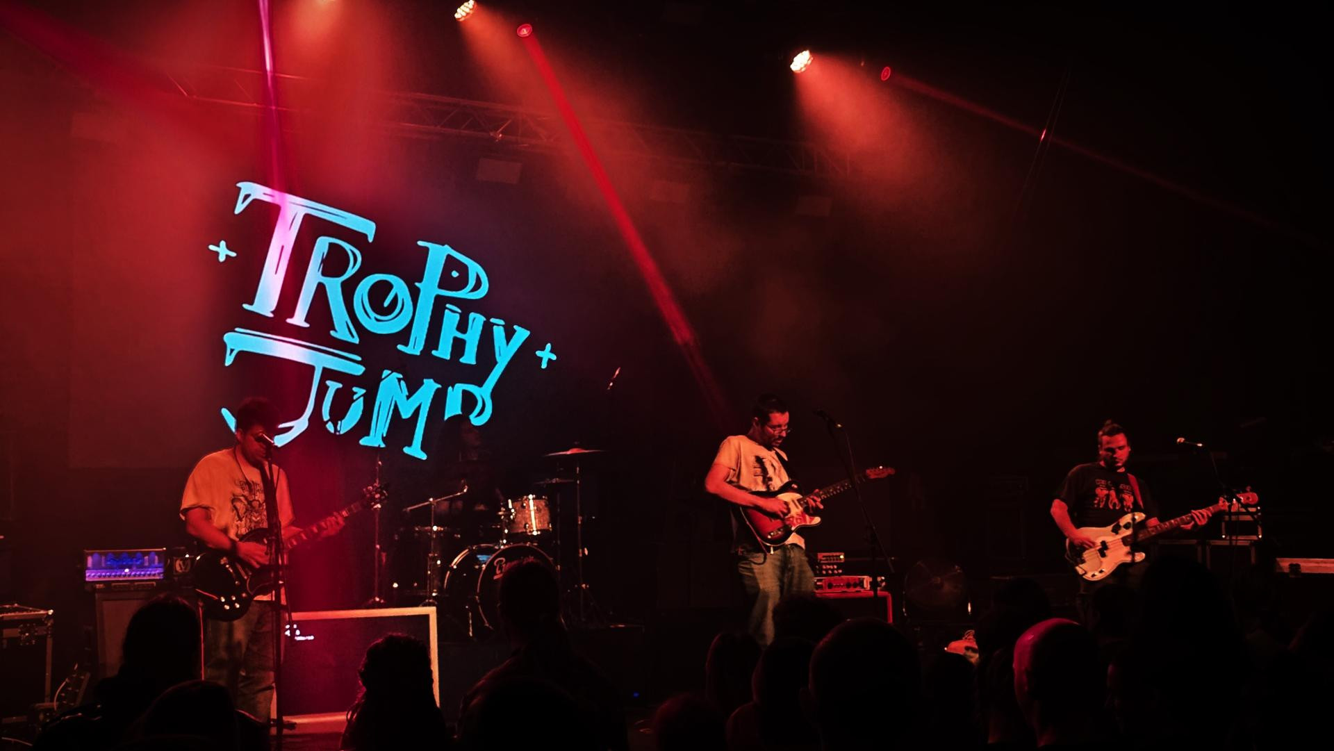 U potrazi za skloništem od zimske večeri, preskočio sam garderobu i s kaputom u veliku dvoranu ušao usred seta prvog benda Trophy Jumpa. Ovi momci iz Zagreba posljednje desetljeće nastupaju diljem Europe i izvode sasvim solidan melodični punk (teško je, naime, ijedan od ova tri benda svrstati u klasični punk-rock ili pop-punk jer se nalaze na tankoj međi ovih izričaja). Iako umoran, pothlađen i u 12. satu vikend smjene, ova četa software developera predvođena Antunom Aleksom me energijom i jačinom zvuka trgnula iz letargije. Da, Antun iz Trophy Jumpa je isti onaj Antun iz IDEM čija popularnost posljednje dvije godine strelovito raste, a zaraznost nastupa iz svog glavnog projekta vrlo vješto prenosi i na rad s Trophy Jumpom.