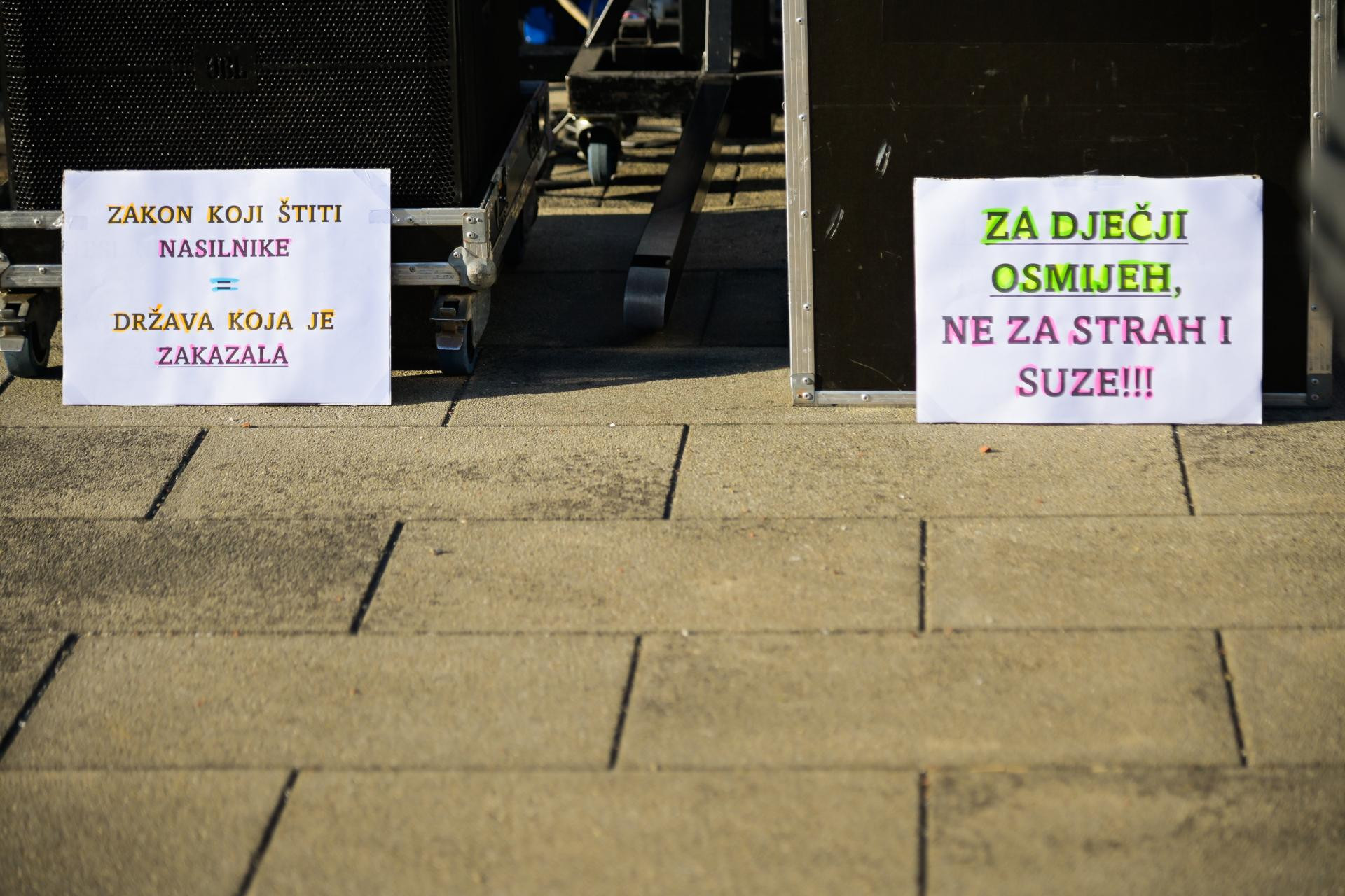 - Ne želimo da naša djeca budu boksačke vreće i bankomati nasilnicima, čulo se danas na prosvjedu ispred Kulturnog centra u Dubravi na kojem se okupilo stotinjak ljudi.