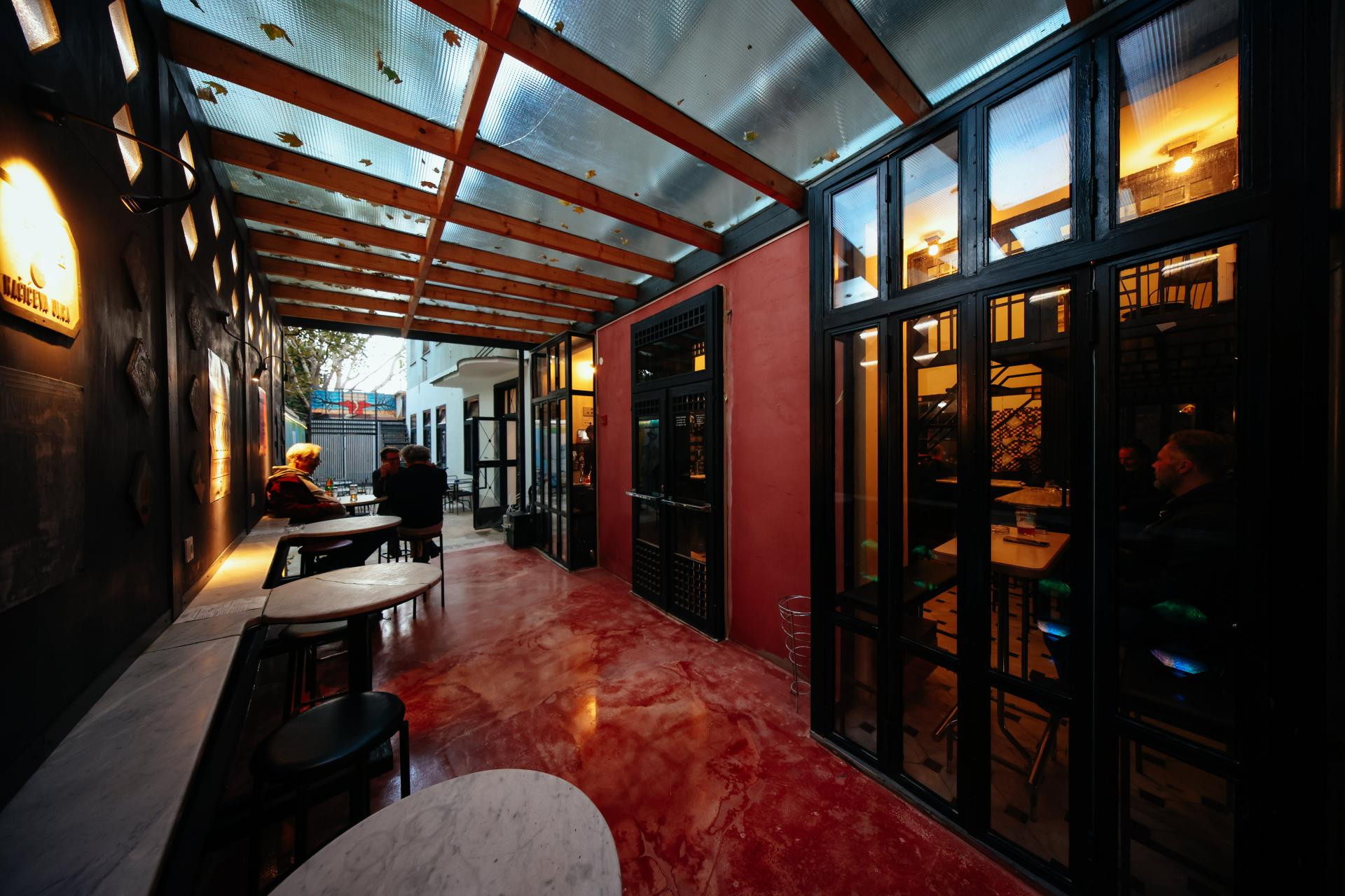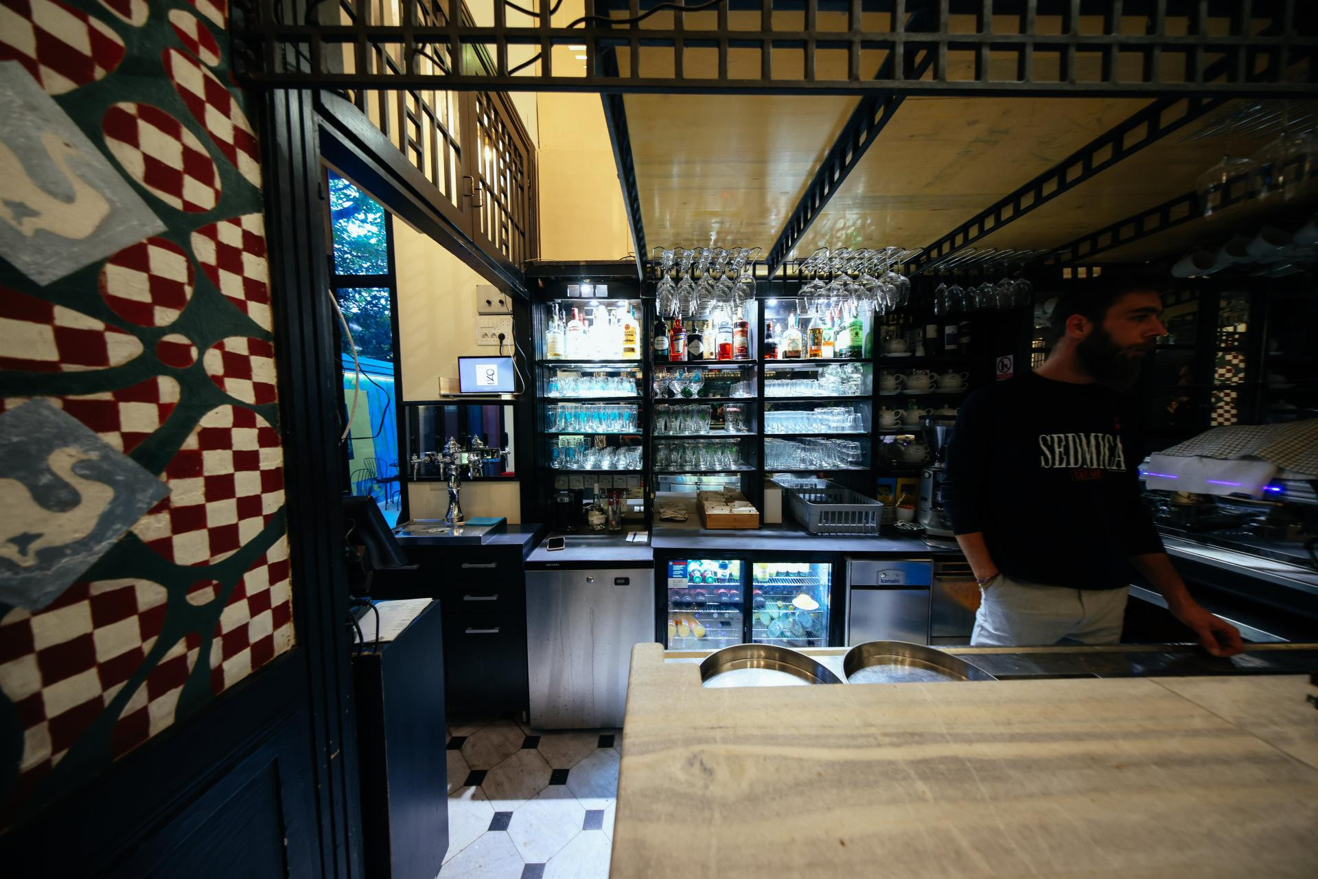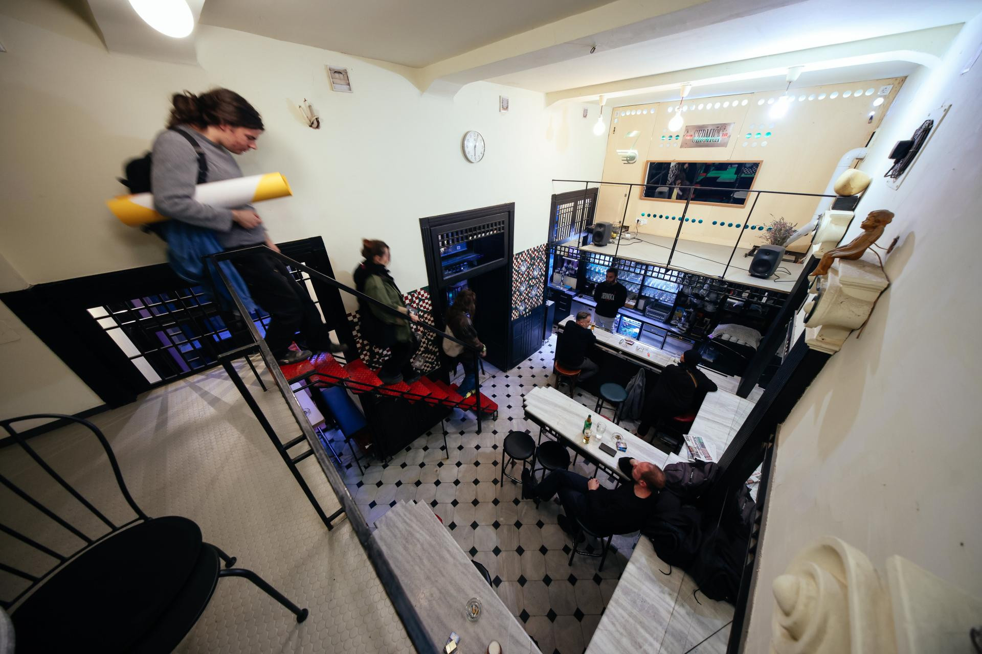 Nije to velik prostor, 50 - ak kvadrata visine plafona 4,20 metra, s lijeve strane je šank, u sredini par stolova i desno iznad galerija. No ima taj svoj neosecesijski šarm i duh kafića kakvih je sve manje u Zagrebu.