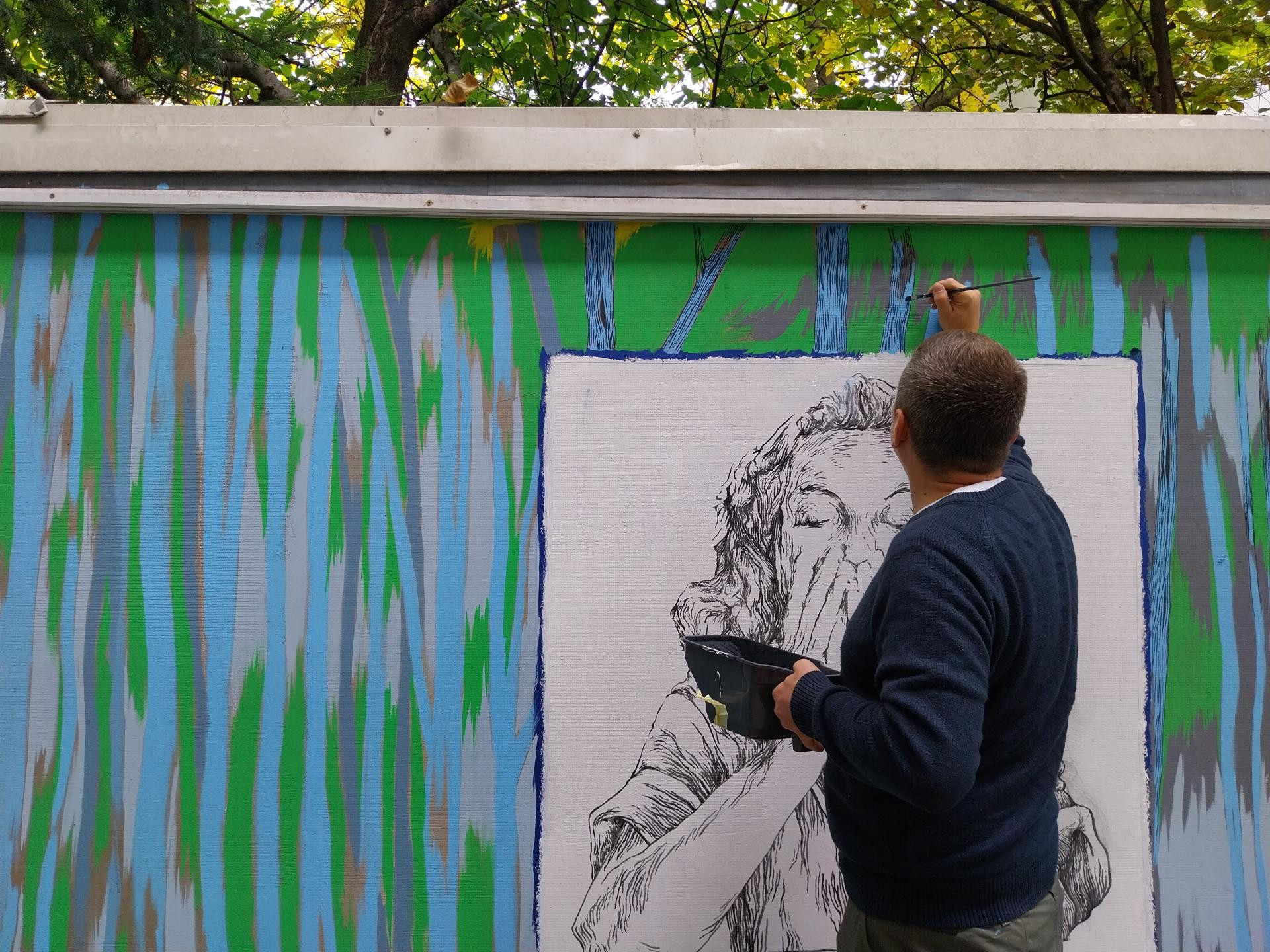 Dok smo bili u posjetu taman je slikar Sven Klobučar oslikavao mural u dvorištu.