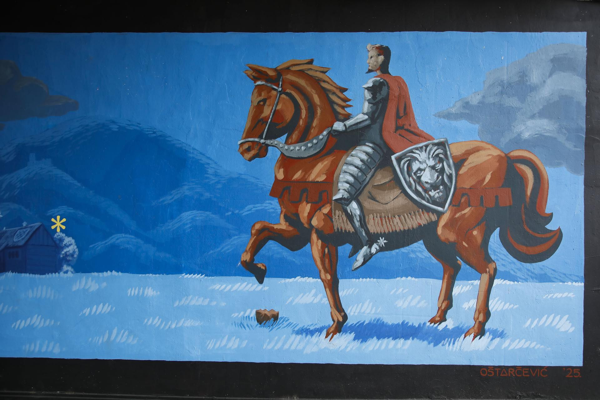 - Obzirom na poziciju murala, a riječ je o vanjskom bočnom zidu knjižnice Vladimira Nazora, kao i logici imenovanja ulica u kvartu, za polazišnu točku rada uzeo sam književnost što se odlično uklopilo u moje trenutne interese koji su velikim dijelom posvećeni novom iščitavanju klasika svjetske i nacionalne književnosti pri čemu je Cervantesovo najpoznatije djelo ostavilo poseban utisak na mene. Lik Don Quijote postao je točka s koje sam dalje gradio likovni i konceptualni okvir murala zamišljajući novu iteraciju, novu avanturu viteza koja se odvija na putovanju preko Alpi, a s odredištem u Zagrebu gdje se nalazi s domaćim piscima i spisateljicama kako bi razmijenio priče, iskustva i doživljaje te potencijalno pronašao i autora za svoju novu knjigu - otkrio nam je Oštarčević.