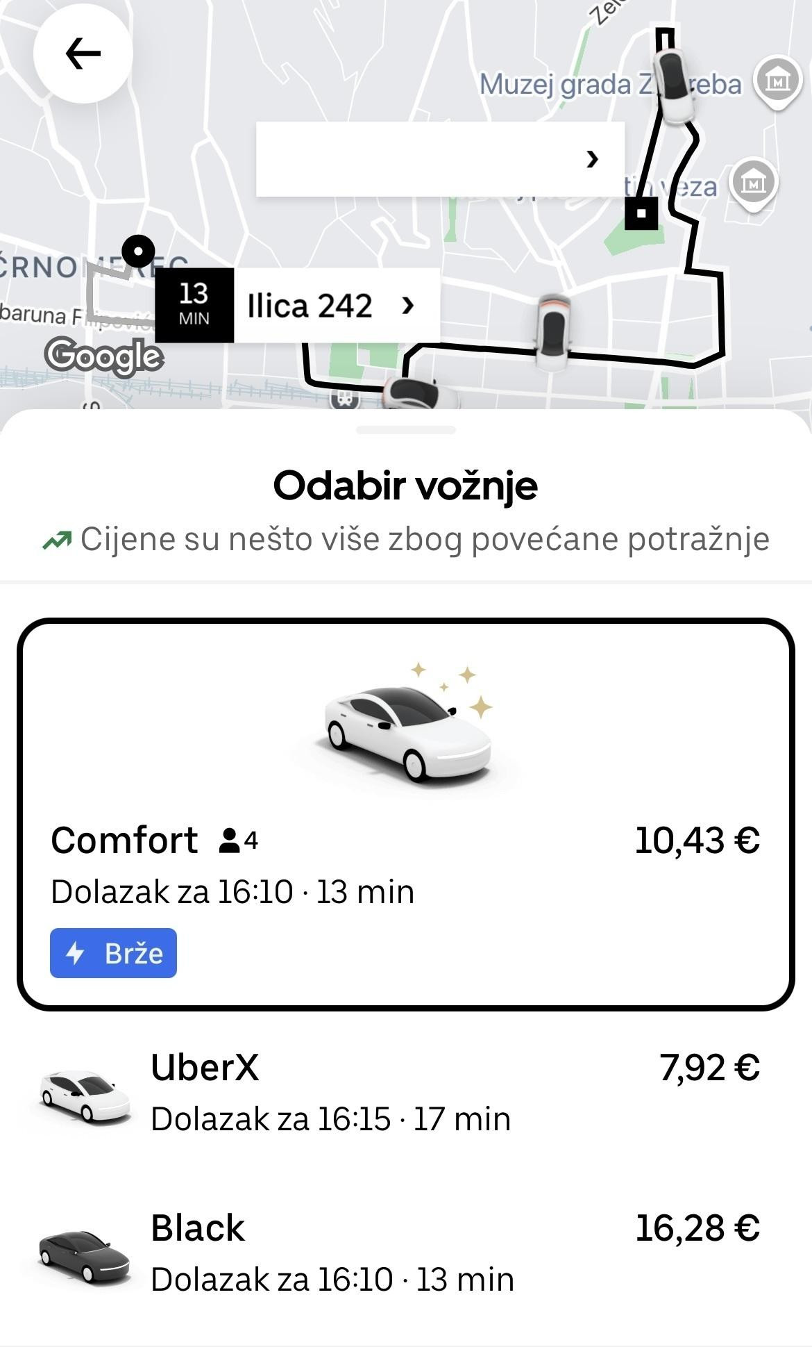 Udaljenost: četiri kilometra. Trajanje: 13 minuta. Cijena taksi vožnje: 57 eura. U usporedbi s istom vožnjom putem taksi aplikacija, čak sedam puta skuplje.