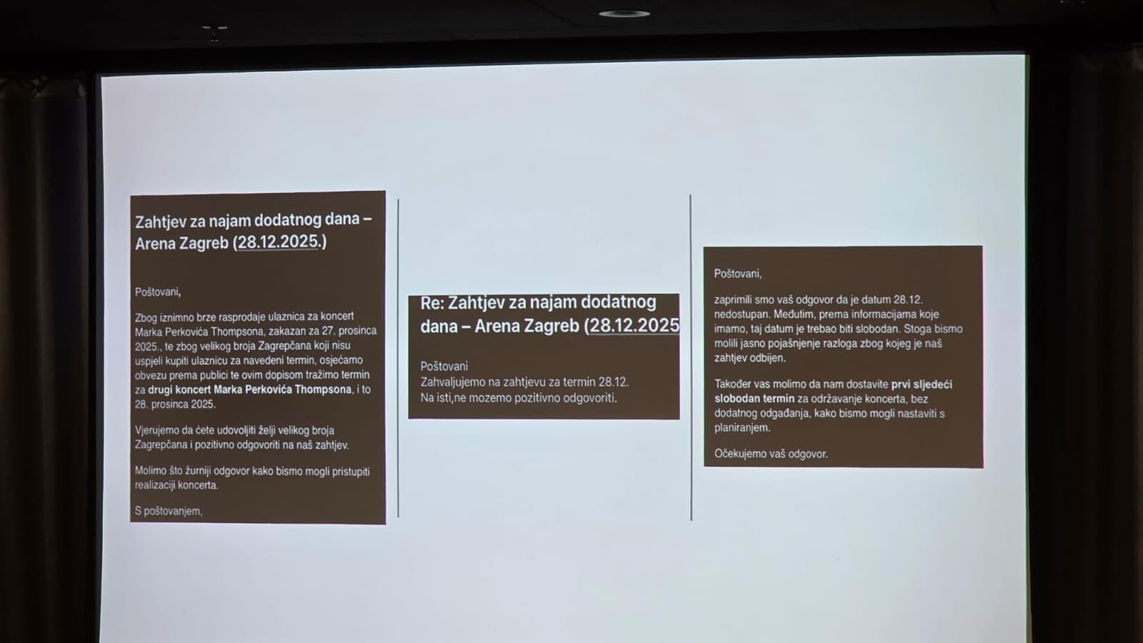 13.11 - Sada pokazuju mail prepisku koju su imali s Gradom Zagrebom vezano uz datum drugog koncerta u Areni.