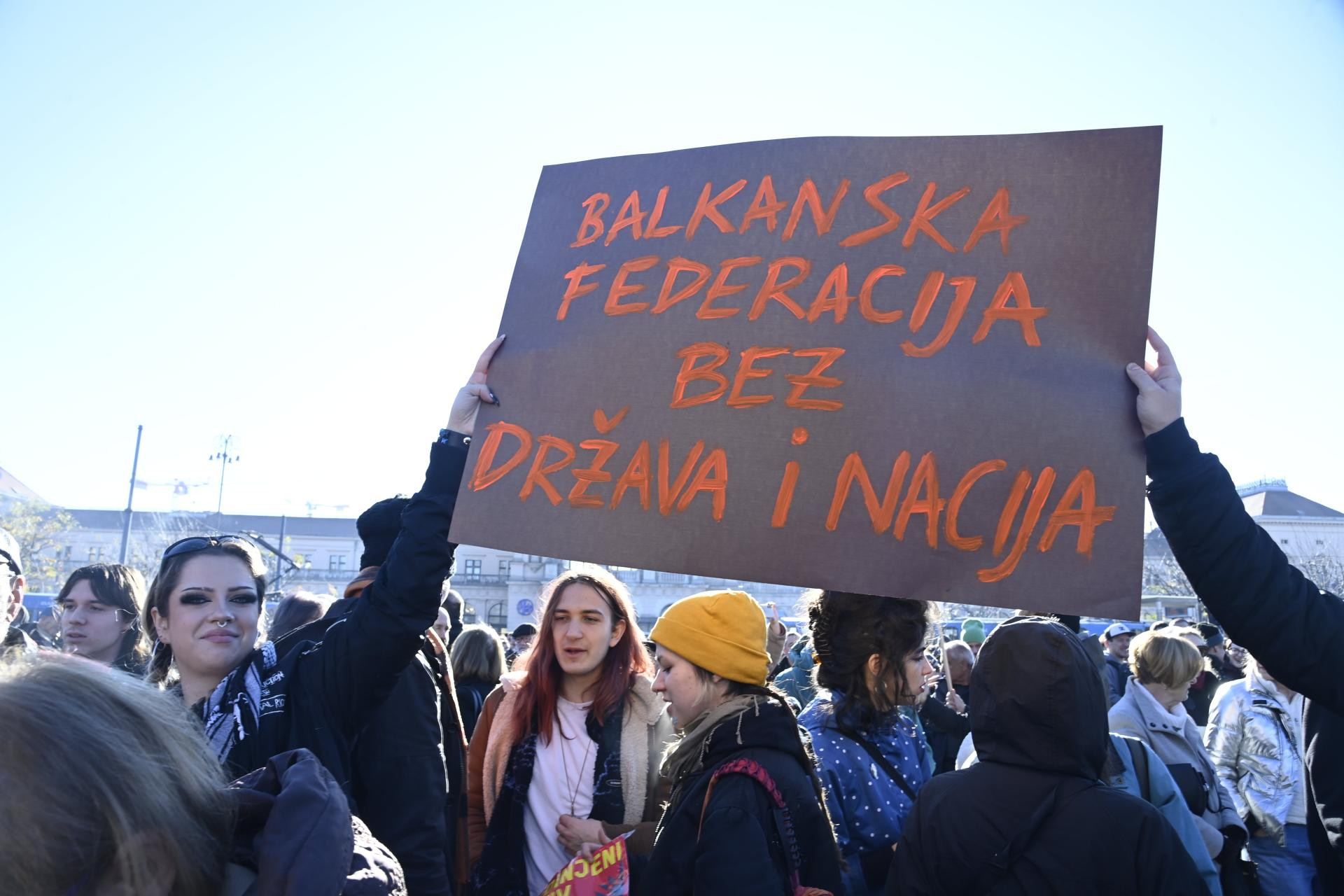 Poruke govornika iznesene na prosvjedu smatra primjerenima, a odgovorio je i na upit kako komentira natpise na ćirilici i jugoslavenske zastave.