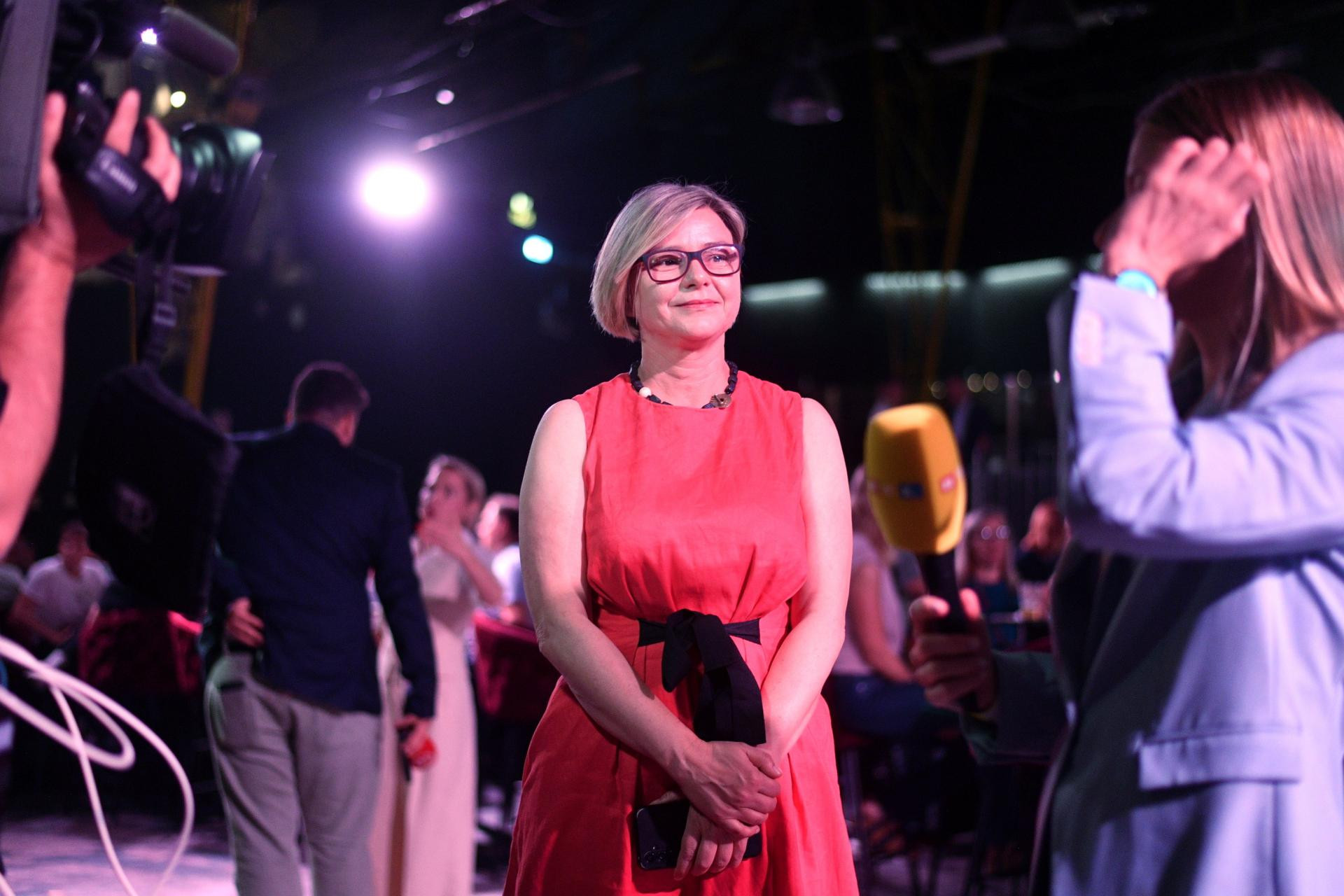 20:50 Marija Selak Raspudić je stigla u stožer u kojem je dočekana gromoglasnim pljeskom.