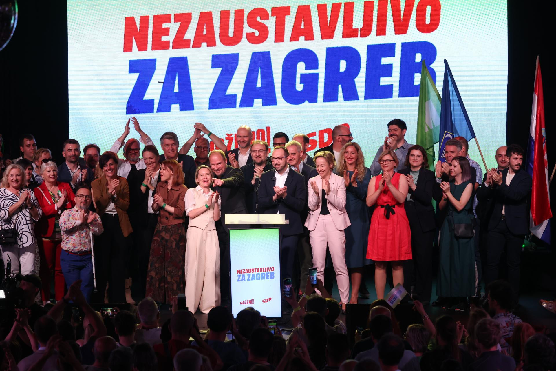 - Slijedi mandat razvoja, poručio je u svom pobjedničkom govoru Tomašević s pozornice u Tvornici kulture gdje Možemo već tradicionalno prati rezultate izbora u Zagrebu.